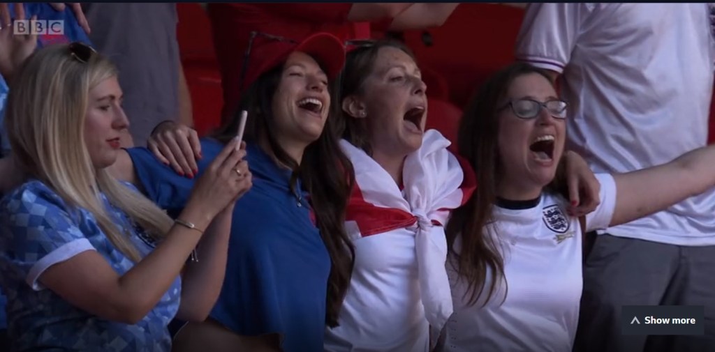 We analysed two Euro 2020 matches where the camera team (who, we confidently presume, are predominantly male) captured shots of men of all ages, shapes and sizes but appeared to almost exclusively take an interest in young female fans who resemble the “symmetrical, toned, white, and thin women…advertised as the “ideal” by mainstream media”.