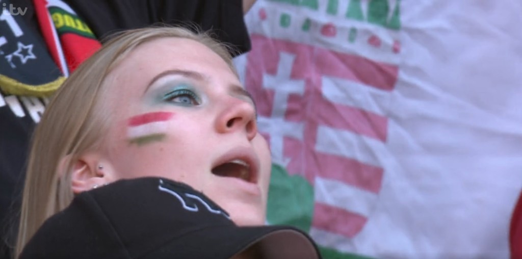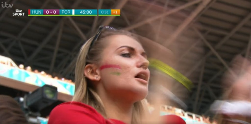 20 fill shots were selected in total from Hungary-Portugal. 11 of these images predominantly feature or focus on women and we would argue that at least eight of them (72%) have been selected to connote “to-be-looked-at-ness”/attractiveness.
