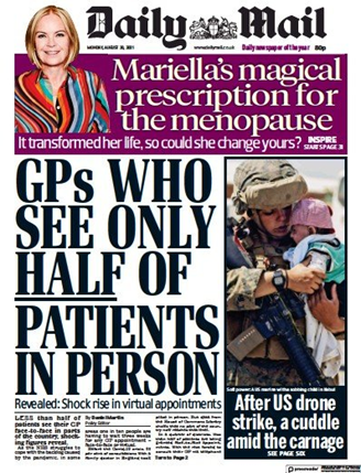 How would a free press report such an atrocity? The Daily Mail, card carrying member of the UK corporate media, quickly showed how they wouldn’t. “A cuddle amidst the carnage” declared their 30th August front page beneath a picture of a US Military servicewoman cradling an Afghan child.