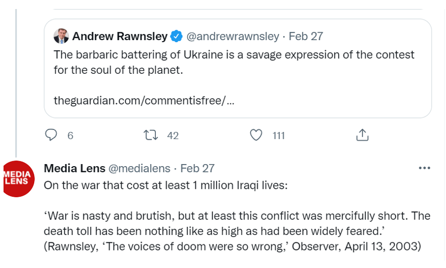 Given the context (daily UK media outrage over loss of civilian life in Ukraine) it was interesting to see the BBC’s North America reporter Anthony Zurcher make the following observation: