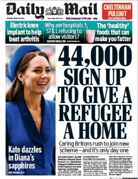 That can’t be the case, though, because here they are in 2022 praising the “caring Britons” offering Ukrainian refugees a home…