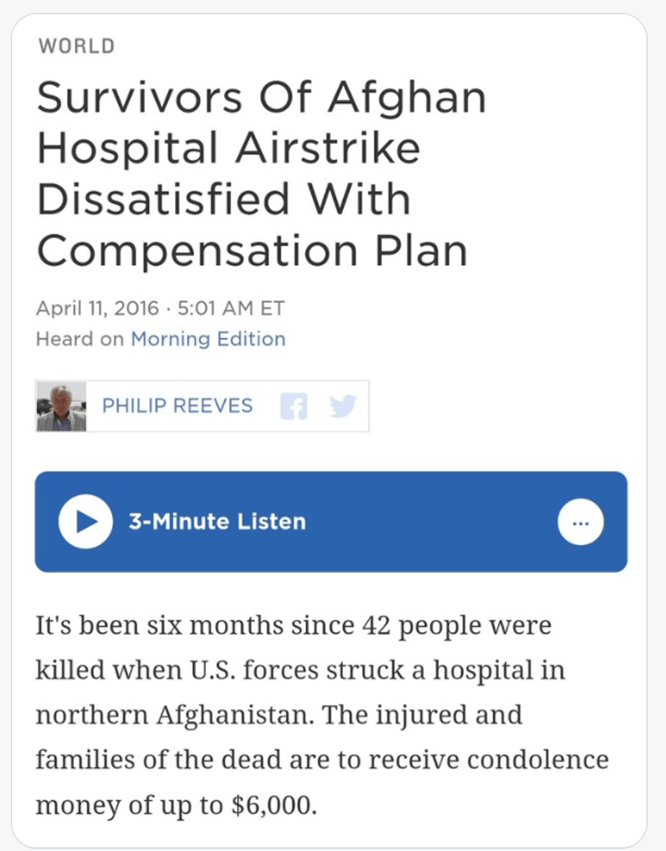 That’s the US effectively admitting liability for a hospital strike (paying out compensation), while Obama was in the White House and Clinton was the Democrat’s candidate for President.