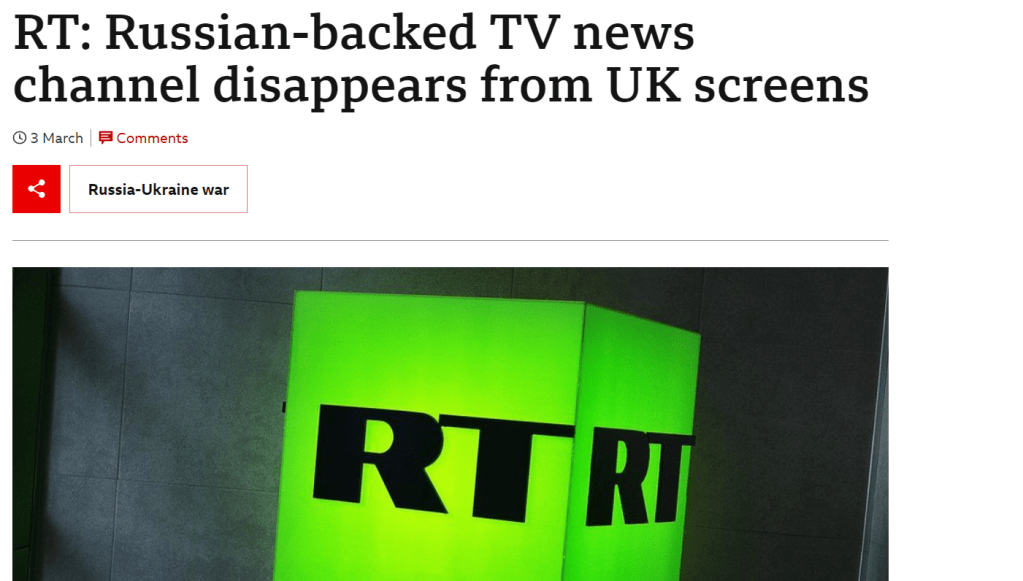 The BBC reported Russia Today’s cancellation somewhat sheepishly. No wonder. Just days after RT was banned because, according to culture secretary Nadine Dorries, it “is the wrong thing to do to stream Russian propaganda into British homes”, the government made another announcement: