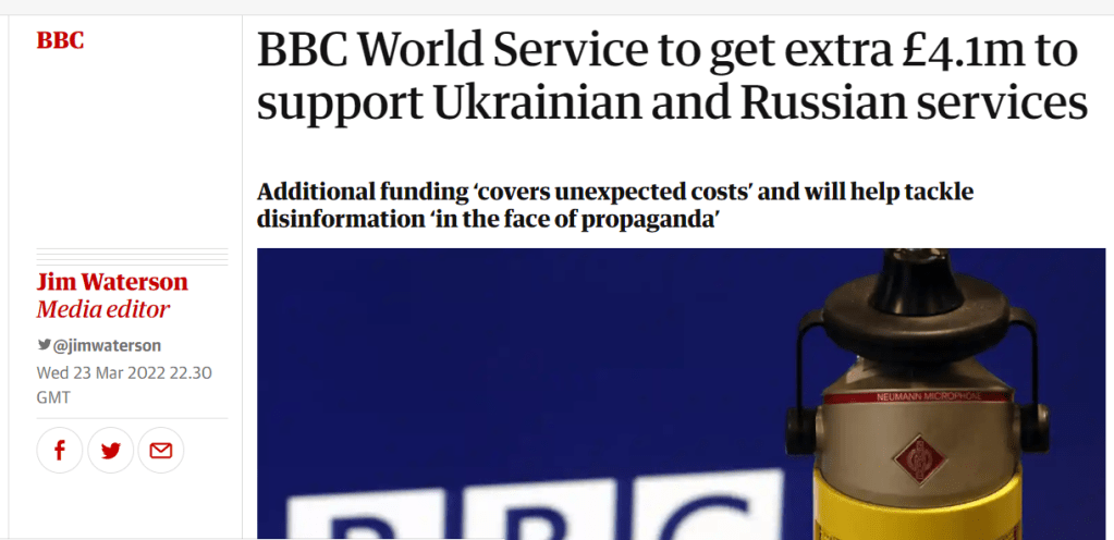 It takes a special kind of mind to, on the one hand, ban Russian state-sponsored content from the UK, while investing more of your own money on expanding British state-sponsored content in “countries that are seen as key to Britain’s strategic aims” such as Russia and Ukraine.