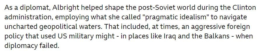 Anyone naïve enough to agree that Russia spread “propaganda” while the BBC merely “counter disinformation” would be advised to check out an article that appeared on the BBC website the very same day, announcing the death of Madeleine Albright.