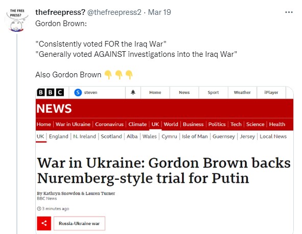 Gordon Brown and Alastair Campbell, two of the primary architects of the Iraq War, were among those bold enough to put their heads above the parapet on Ukraine.