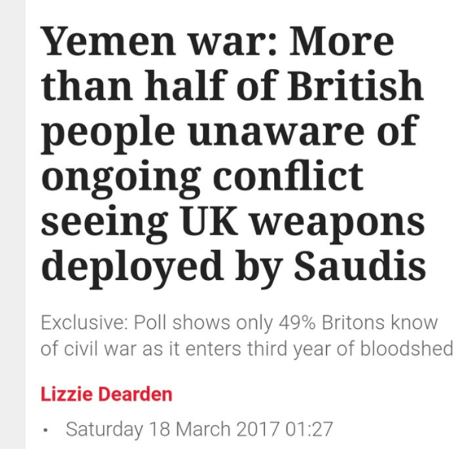 Can this be explained by the fact that these atrocities are the responsibility of our “friends, allies and partners” Saudi Arabia, carried out, in many cases, with weapons sold to them by British corporations?