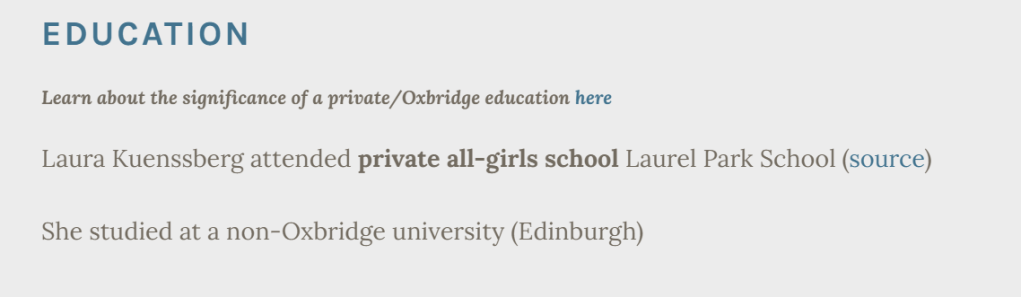 Here is the data we gathered on Laura Kuenssberg for her Matrix Database entry: