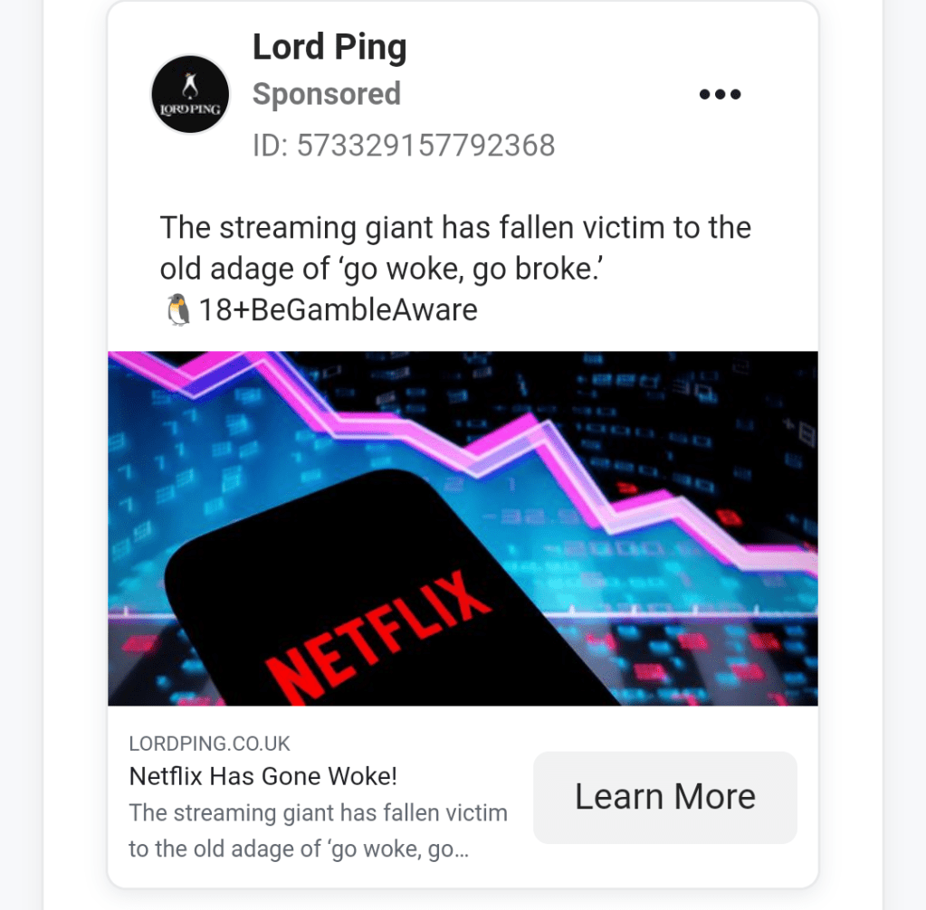 In the most recent article, an ad for which has since been removed, the anonymous author argues that it “Seems Netflix Has Gone Woke”: