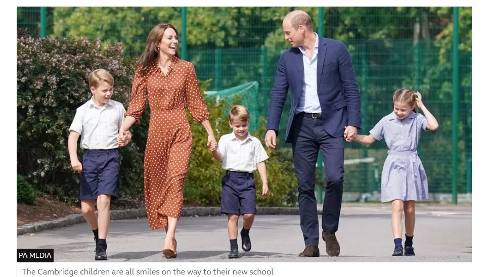 We refer you to a BBC article from the day before – an article written before any serious concerns about the Queen’s health were raised: George, Charlotte and Louis have first day at Lambrook School.